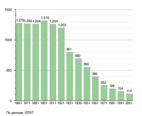 Население составляет 103 человека (2008 г.), плотность населения составляет 4 чел./км². Занимает площадь 26 км². Почтовый индекс — 12020. Телефонный код — 0171.