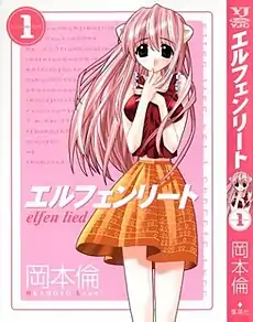 Манга Elfen Lied, написанная Линном Окамото, публиковалась в японском еженедельном журнале Young Jump. Всего издательством Shueisha было опубликовано 12 томов[5]; первый вышел в свет 18 октября 2002 года[6], а последний — 18 ноября 2005 года[7]. В мангу также вошли шесть дополнительных глав:MOL[8], Dejitoporisu[9], Memoria[10], Elfen Lied[11], Mō hitotsu no shiawase na mirai и Sake wa nomu hō nomareru hō?[12]. Сам автор писал, что манга изначально задумывалась им как короткое произведение, однако её успех у читателей побудил его продолжить сюжет[13]. Публикация всей манги оказала влияние на стиль рисования мангаки. По его словам, первые тома произведения были нарисованы им в «неуклюжем и детском стиле», хотя он и прикладывал значительные усилия к их прорисовке[14].
