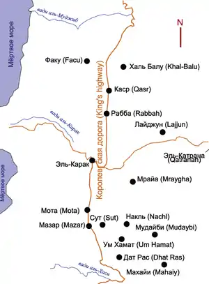 - Towns and Tourist Sites in Jordan — The Kings' Highway, Kerak, Wadi Mujib and Dana (недоступная ссылка). Дата обращения: 23 сентября 2008. Архивировано 20 сентября 2008 года.