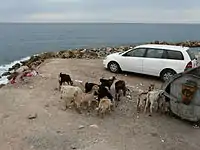 Домашние козы пасутся вдоль дорог на окраинах и на побережье Старого Города эль-Мукаллы. Они едят мусор, бумагу, дерево (ветки и остатки старой мебели, старых дверей и окон), пластиковые пакеты и прочий мусор, так как зелёных насаждений и травы в городе очень мало. В городе есть специально созданные и регулярно поливаемые оазисы из кустов, деревьев и травы, которые либо огорожены от коз, либо расположены в Новом Городе эль-Мукаллы, где коз не содержат. Можно встретить стадо коз пасущихся возле мусорных баков на побережье, возле домов и на крышах сараев. Козы — это одна из достопримечательностей Старого Города.