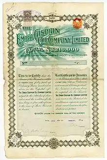 «Каспийская нефтяная компания Эмба» (англ. The Emba Caspian Oil Company, Limited) — британская нефтяная компания, учрежденная в 1913 году в Лондоне Российской генеральной нефтяной корпорацией при поддержке Русско-Азиатского банка. Получила свое название по одноименной реке. Река Эмба, первые сведения о наличии нефти в бассейне которой были обнаружены ещё в записках Бековича-Черкасского, организовавшего по Указу Петра I военно-типографическую экспедицию в Хиву через нижнее течение данной реки,[1] протекает в Актюбинской и Атырауской областях современного Казахстана, разделяя европейскую и азиатскую части этого государства.