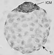 Задержанная имплантация происходит не из-за случайного неприкрепления зародыша к слизистой оболочке матки, а из-за ингибирующего влияния матки на развитие бластоцист.[44] Развивающееся яйцо, пройдя в яйцеводах период дробления и достигнув стадии бластоцисты, попадает в полость матки. Здесь оно некоторое время находится во взвешенном положении в жидкости просвета матки, без контакта с эпителием матки. У разных млекопитающих такая ситуация может длиться от нескольких часов (у хомяков) и 2—3 дней (у человека) до нескольких месяцев (у соболя, броненосца и других) — последний упомянутый случай сопровождается эмбриональной диапаузой. Для начала процесса имплантации в матке должны произойти как общие изменения, определяющиеся гормональным фоном, так и локальные, связанные со взаимодействием с бластоцистой. В районе контакта с эмбрионом (или небольшого расстояния до него) клетки соединительно-тканной стромы матки преобразуются в децидуальные клетки. Вероятно, наряду с другими факторами, решающую роль в данном процессе играют иммунологические факторы.[45]