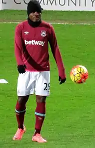 31 января 2016 года перешёл в английский «Вест Хэм Юнайтед» на правах аренды с правом выкупа[29]. 6 февраля в матче против «Саутгемптона» он дебютировал в английской Премьер-лиге, заменив во втором тайме Микела Антонио[30]. Однако в Англии дела у нигерийца не заладились: ему не удалось стать игроком стартового состава, а свои единственные голы за клуб он забил 21 февраля, отметившись дублем в ворота «Блэкберн Роверс» в матче Кубка Англии.