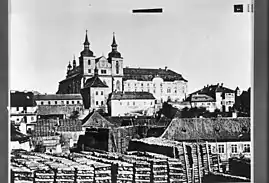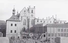 При бомбардировке Праги, 14 февраля 1945 года 8-й воздушной армией Вооруженных сил США, монастырь и церковь были разрушены бомбардировкой. На монастырь и церковь упали 3 сокрушительных зажигательных снаряда, каждый весом 227 килограмм. Попадание уничтожило обе готические башни церкви (северная была полностью разрушена, а южная сгорела). Две трети церковных сводов обрушились. Ново-готическое здание сгорело вплоть до сводов на нижнем этаже. Ремонт комплекса прошел в первой половине 50 годов двадцатого столетия.