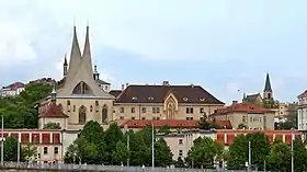 Монастырь, возведенный на скалистом холме при приходской церкви святого Космы и Дамиана, был составляющей урбанистического плана Карла IV по возведению пражского района Нове-Место, в 1348 году. Он был запланирован как звено церковных построек, которые в плане города составляют крест. Ареал монастыря включает в себя конвентный храм, к южному квадрату относится клуатр, на запад от них комплекс современных зданий с первой половины 19 века и тридцатых лет 20 столетия. Также к ареалу относится часовня святого Космы и Дамиана с ранним сводом эпохи барокко.