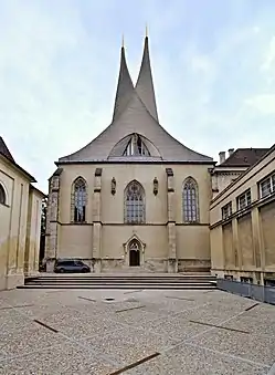 Монастырь, благодаря содействию императора, выраженному помимо всего прочего трудоустройством его придворных художников, а также выдачей индульгенций для паломников, радовал большой популярностью и в скором времени одного монастыря уже было недостаточно. По этой причине в 1371 году Карл IV основал церковь, в честь Девы Марии, святого Иеронима Стридонского , равноапостольных Кирилла и Мефодия и чешский святых Войтеха и Прокопа. Освещение храма и монастыря было произведено в день Пасхи, 29 марта 1372 года, пражским архиепископом Яном Очко из Влашима при участии двух имперских курфюрстов, нескольких епископов, самого Карла IV и его сына Вацлава IV. Карл настоял на освящении церкви пражским архиепископом, а не папским нунцием, чем подчеркнул особенность нового религиозного устройства.