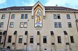 В начале 17 столетия, во время правления Рудольфа II, монастырь снова стал католическим. В 1611 году он пострадал от набега войск из Пассау, когда аббатство разграбил местный сброд. В 1636 году сюда пришли бенедиктинцы из каталонского Монсеррата. Они в 1640 году заменили первоначальную широкую полувальмовую крышу с широким фронтоном крышей из трех частей, после перестроили западную часть нефа и пристроили две башни. Фасад с башнями был завершен в 1712 году, а в 1723 оформили новый главный алтарь.