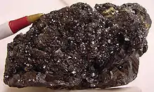 Образец кристаллов энаргита на пирите.