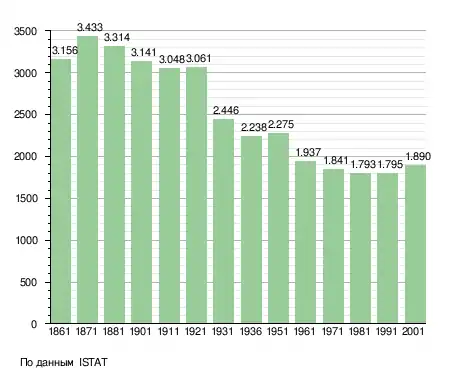 Население составляет 2016 человек (2008 г.), плотность населения составляет 81 чел./км². Занимает площадь 25 км². Почтовый индекс — 12030. Телефонный код — 0175.