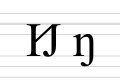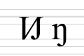 Заглавная форма в виде N с крюком, выходящим вниз за базовую линию; строчная форма в виде n с крюком, выходящим вниз за базовую линию