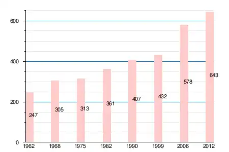 | 1962 | 1968 | 1975 | 1982 | 1990 | 1999 | 2006 | 2008 | 2011 | 2012 |