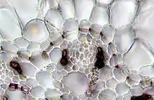 В старых корнях однодольных растений эндодерма состоит из клеток двух типов: живых тонкостенных пропускных и клеток с U-образными утолщениями оболочек[4].
