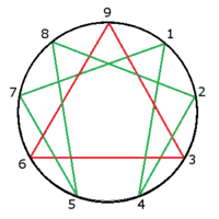 ![]() Эннеаграмма личности и учения Четвёртого пути используют неправильные эннеаграммы, состоящие из треугольника и неправильной гексаграммы. |