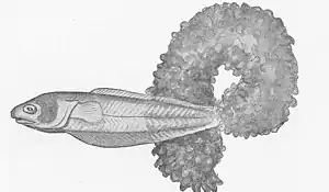 Рыба Carapus acus, выходящая из голотурии