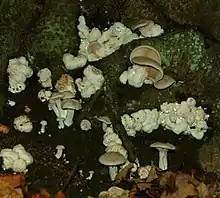- Подрод Claudopus объединяет грибы с сильно нисходящими на ножку пластинками, крепидотоидным или омфалиноидным габитусом (то есть ножка эксцентрическая, шляпка почковидной формы, или же шляпка с глубоким углублением и нисходящими на ножку пластинками) и гифами, на которых обычно присутствуют пряжки[19].