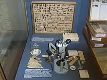- Оборудование для подготовки и препарирование энтомологического материала — расправилки, инструменты для препарирования, пинцеты, энтомологические булавки, плашки, пергаментная лента, ступенчатые блоки, микро пробирки для гениталий насекомых, клей для насекомых, увеличительные стекла и другое.