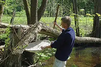 - Полевое оборудование для сбора и временного хранения пойманных насекомых — различные энтомологические сачки (воздушный, для кошения, водный, для сбора насекомых с коры дерева и так далее), энтомологический зонт, эксгаустер, различные ловушки и конструкции для ловли насекомых (ловушка Барбера, ловушка Малеза, ловушка Мёрике, энтомологическое сито), морилки; ёмкости и конверты для насекомых, энтомологические матрацы.