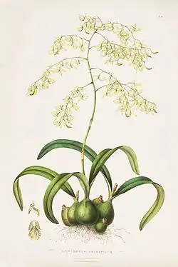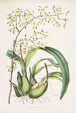 ![]() Encyclia plicata Ботаническая иллюстрация из книги «Edwards’s Botanical Register, volume 33 (N.S. 10) plate 35» 1847 г. | ||||||||||||