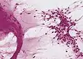 - Основным гистологическим типом является истинная эпендимома , для которой типично наличие периваскулярных и истинных «розеток». Периваскулярные «розетки» («псевдорозетки», «лучистая корона») состоят из клеток новообразования, которые располагаются вокруг кровеносных сосудов. В истинных «розетках» опухолевые клетки находятся вокруг каналов, которые выстланы эпендимарными клетками.