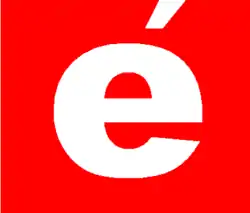 * С 8 марта 2001 по 31 июля 2017 года логотип состоял из тёмно-красного квадрата, в котором была написана была украинская буква «é» с ударением над буквой. Под логотипом находилась тёмно-синяя горизонтальная полоса, в которой были часы. В ночное время логотип был без часов. Находился в правом нижнем углу.