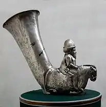 ![]() | ![]() | Серебряные ритоны Ахеменидской эпохи сочетают элементы восточного, древнегреческого и урартского искусства[35]. |