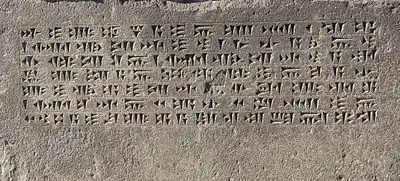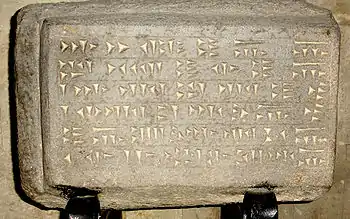 ![]() | Перевод надписи: … Руса, сын Эрмины, это зернохранилище наполнил. Здесь 6848 капи зерна[31]. |