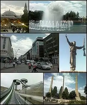 ![]() Слева вверху: мечеть Лала Кара Мустафа-паши, вверху справа: у бассейна Эрзурум, в центре слева: проспект Джумхуриет, в центре справа: статуя Нене-хатун, внизу слева: прыжок с трамплина Киремитликтепе, справа внизу: Статуя Свободы в Эрзуруме | |