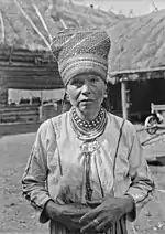 Эрзянки, живущие на Волге, сначала надевали сороку при замужестве, потом сорока надевалась на голову каждый день. (Клебанд 1986: 46).