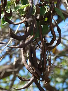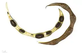 Андроцей представлен 10 тычинками, одна из которых — свободная, 9 других срастаются в области тычиночных нитей. Гинецей состоит из единственного плодолистика, зажатого между тычинок, подобно ножу в ножнах.