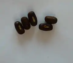 Плод — сухой боб несколько сантиметров длиной, образовавшийся из единственного плодолистика, содержит 8—10 каштаново-коричневых бобовидных семян. Семядоли находятся под землёй до начала прорастания семени.
