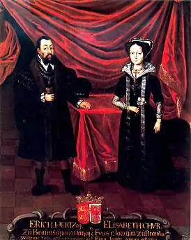 ![]() Эрих I со своей второй супругой Елизаветой, ок. 1530 г. | |