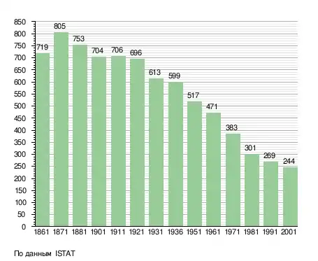 Население составляет 265 человек (2008 г.), плотность населения составляет 16 чел./км². Занимает площадь 17 км². Почтовый индекс — 17030. Телефонный код — 0182.