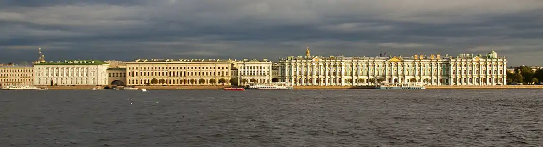 ![]() Зимний дворец, вид с акватории реки Невы. | |||