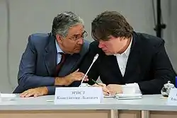 Кроме того, в 2005 году Эрнст вошёл в попечительский совет фестиваля «Кинотавр»[132], в 2008 — в попечительский совет Высшей школы телевидения Московского государственного университета[133], в 2009 году — в правительственный Совет по развитию отечественной кинематографии под председательством премьер-министра Владимира Путина[134][135][136], а в 2013 году — в общественный совет Государственного центрального музея кино, учреждённый Министерством культуры для поддержки культурной институции[137][138].