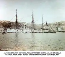 В качестве ответного жеста на визит принца Комацу султан выслал в Японию корабль «Эртогрул» с подарками для японского двора.[7] Незадолго до назначения корабль, после 25-летней службы, прошёл капремонт, и значительная часть дерева была заменена.[7] 14 июля 1889 года корабль с командой из 607 человек, в том числе 57 офицеров, вышел из Стамбула под командованием Али-бея.