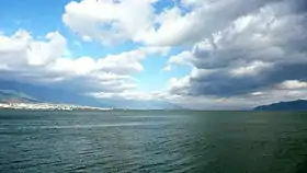 С запада котловину озера ограничивает хребет Дяньцаншань, на берегу расположен древний город Чжунхэ (Дали)[1].