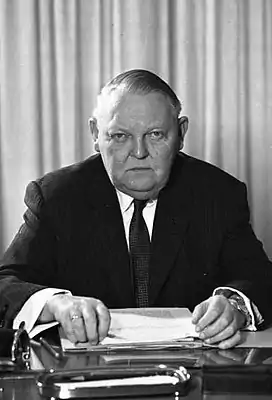 Людвиг Вильгельм Эрхард (нем. Ludwig Wilhelm Erhard; 4 февраля 1897, Фюрт, Германская империя — 5 мая 1977, Бонн, ФРГ) — западногерманский экономист и государственный деятель, основное действующее лицо послевоенных экономических реформ в ФРГ. Федеральный канцлер ФРГ в 1963—1966 годах. Председатель Христианско-демократического союза с марта 1966 по май 1967 года.