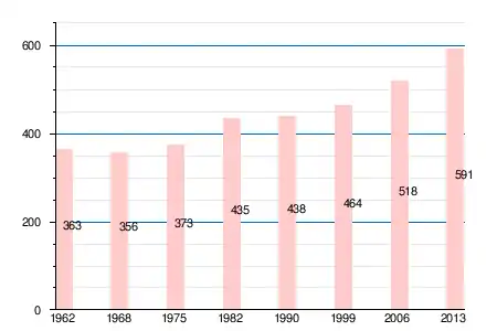 Население коммуны в 2011 году составляло 586 человек[7], в 2012 году — 588 человек[8], а в 2013-м — 591 человек[6].
