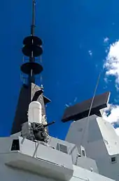 Для ближней противовоздушной обороны корабль оснащен двумя 30-мм орудиями в одноствольных установках DS-30B (побортно) и двумя 20-мм артустановками Mk 15 «Фаланкс» Block 1B (также побортно)[53]. Установки эффективно дополняют друг друга: обладающий большей огневой мощью «Эрликон» обеспечивает поражение как летательных аппаратов, так и легких надводных целей, а обладающий минимальным временем реакции и большой точностью «Фаланкс» обеспечивает дострел прорывающихся к кораблю ракет.