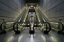 Эскалатор (англ. escalator, составлено по образу слова elevator, от фр. escalade — штурмовая лестница, что в свою очередь от лат. scala — лестница) — подъёмно-транспортная машина в виде наклонённой на 30—35° к горизонту лестницы с движущимися ступенями для перемещения людей с одного уровня на другой. Ступени лестницы обычно прикреплены к замкнутой цепи, которая приводится в движение от электродвигателя через редуктор или с помощью линейного привода. Является одним из видов конвейера.