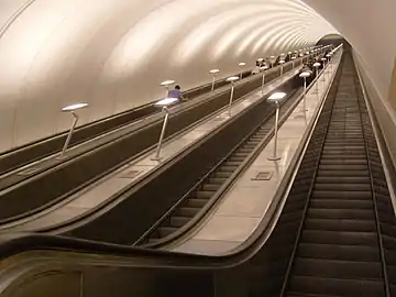 - Самые длинные эскалаторы в Западном полушарии и в США установлены на станции «Уитон» Вашингтонского метрополитена. Их длина 70 м, высота подъёма 35 м.