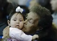 Также у монгольских народов, собственно монголов, бурят и других, в бытовой традиции часто можно встретить схожее приветствие - при встрече, взрослый (обычно пожилой человек) может понюхать голову ребёнка, порой символически. Это встречается только в отношении взрослый—ребёнок и у близко знакомых людей, чаще родственников. Исключением из этих условий может быть лишь подобное приветствие от пожилого уважаемого человека, не обязательно лично знакомого с ребёнком, но в присутствии близких последнего - в подобном случае это можно рассматривать как своего рода благословение.