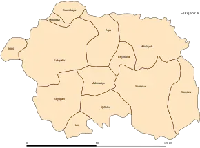 Ил Эскишехир делится на 14 районов, два из которых (Одунпазары и Тепебашы) на самом деле являются составными частями города Эскишехир (Эскишехир меркези):