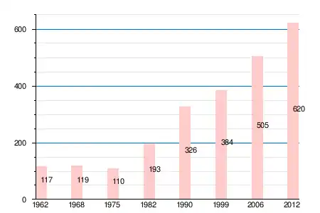 | 1962 | 1968 | 1975 | 1982 | 1990 | 1999 | 2005 | 2006 | 2010 | 2011 | 2012 |