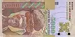 На оборотной стороне, помимо основного изображения, размещён номинал, название центрального банка, изображение и государственного герба, предупреждение о подделке.
