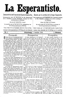 Первое периодическое издание на эсперанто называлось «La Esperantisto» («Эсперантист»; 1889).