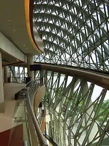 Здание спроектировали две архитектурные фирмы, которые работали совместно: DP Architects (DPA) из Сингапура и лондонская компания Michael Sparkle & Partners (MWP), последняя покинула проект в мае 1995 года. Дизайн состоит из двух округлых пространств, оснащённых треугольными стеклянными элементами и солнцезащитными элементами.[7]
