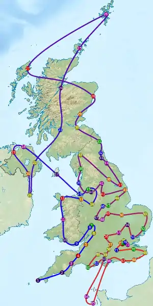 Хотя тур и шёл большей частью по территории Соединенного Королевства, были также посещены коронные земли — Джерси, Гернси и остров Мэн — и Республика Ирландия.