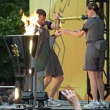 - Dillman, Lisa. London Olympics: Message is unity as youngsters light the torch (27 July 2012). Дата обращения 30 июля 2012.