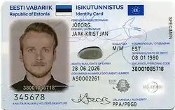 ID-карта (эст. ID-kaart) — идентификационная смарт-карта. Выдаётся начиная с 2002 года.[1] Карта является первичным удостоверением личности и действительна в пределах Эстонии; она признана всеми членами Евросоюза и государствами-членами Шенгенского соглашения, не входящими в Европейский союз, в качестве официального удостоверения для путешествующего лица. Для поездок за пределы Евросоюза, кроме Норвегии, Исландии, Швейцарии, Македонии и Черногории, гражданам Эстонии необходим эстонский паспорт. Все граждане и граждане ЕС постоянно проживающие в Эстонии могут получить ID-карту. С внесением изменений в законодательство об иностранцах — лица с временным видом на жительство получают карту вида на жительство вместе с разрешением на пребывание (поселение) в Эстонии в качестве документа, подтверждающего вид на жительство и присвоение иностранцу эстонского личного идентификационного кода. При продлении вида на жительство на очередной срок иностранцу выдаётся новая карта вида на жительство, содержащая информацию о сроке действия вида на жительство, а также права на работу. Вид на работу может содержать информацию по какой профессии обладатель вида на работу имеет право работать и если есть ограничения, в какой фирме.